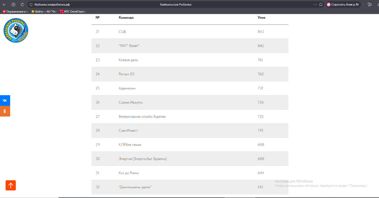 Стоит отметить, что в соревновании из 370 команд, команда ТП «Энергосбыт Бурятии» АО «Читаэнергосбыт» заняла 30 место, показав улов весом 680 грамм. Мы сохраняем надежду улучшить этот результат в следующем году и подняться на пьедестал почета!